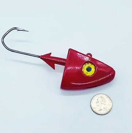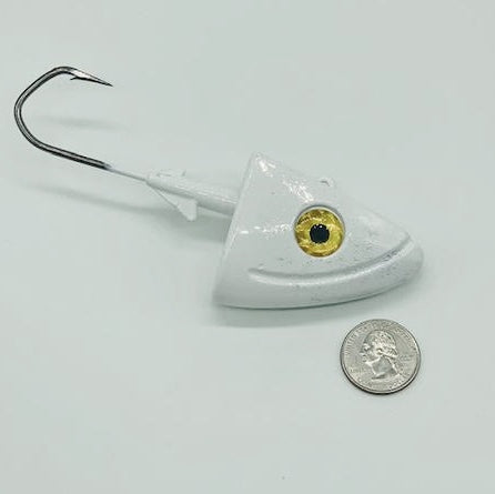 These 16 oz Lead Shad Jigheads come with Forged Mustad 12/0 hooks. Like all our products, these are 100% Made in America. Featuring countersunk 3D stick-on eyes, and durable scratch-resistant Powdercoating, these leadheads are ideal for using with scampis, grubs and various swimbaits.