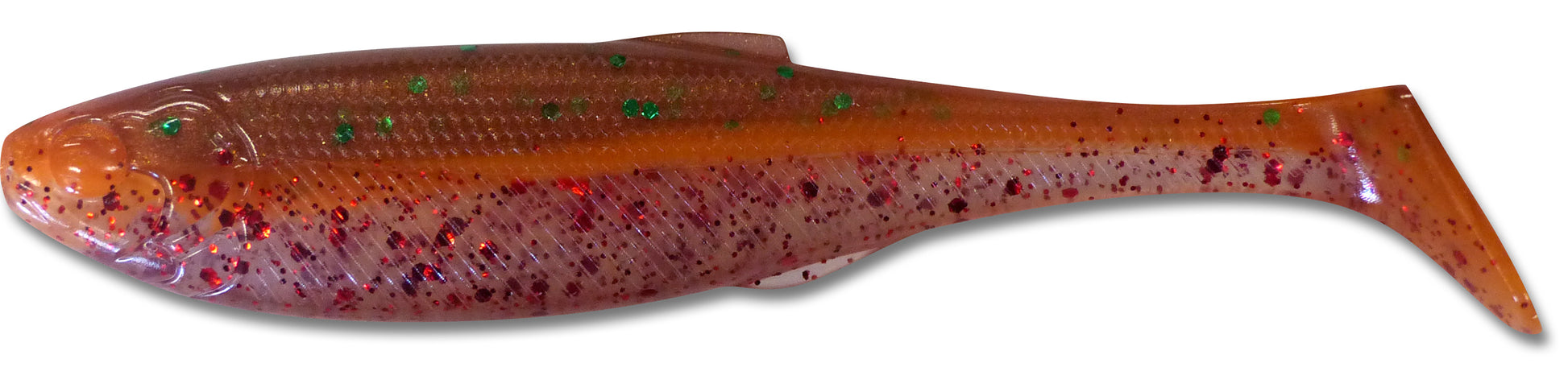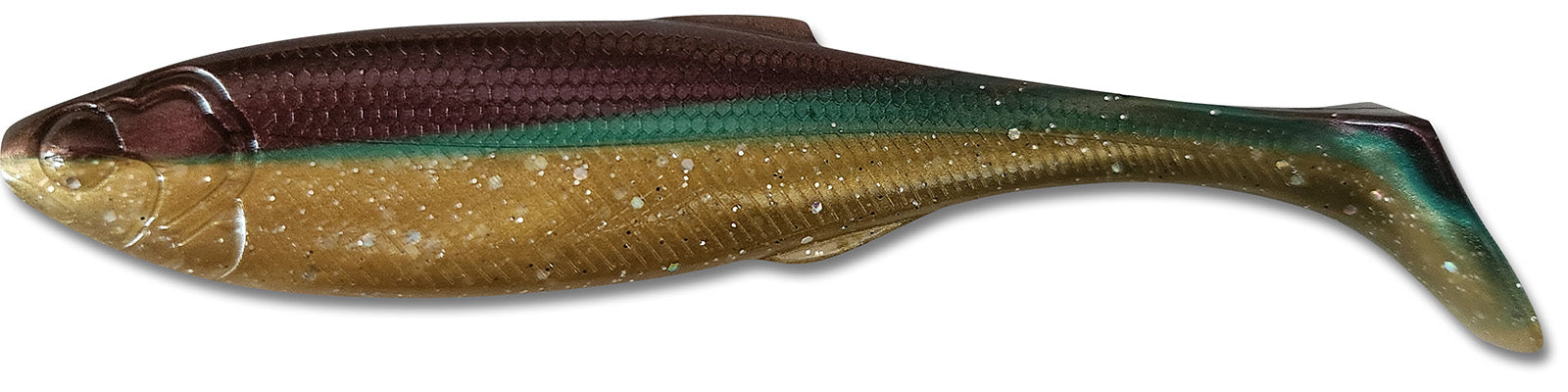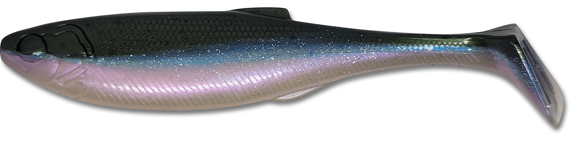Introducing Big Hammer's 5.2 inch "full-bodied" swimbait! Using a combination of the best features of the original 4 and 5 inch swimbaits, this new design has the action Big Hammer is known for, but with a more versatile design that can be rigged on a wide variety of jig heads, weedless swimbait hooks, nose-hooks, drop-shot rigs, and... cutting it and rigging as though it were an "original" Big Hammer swimbait.