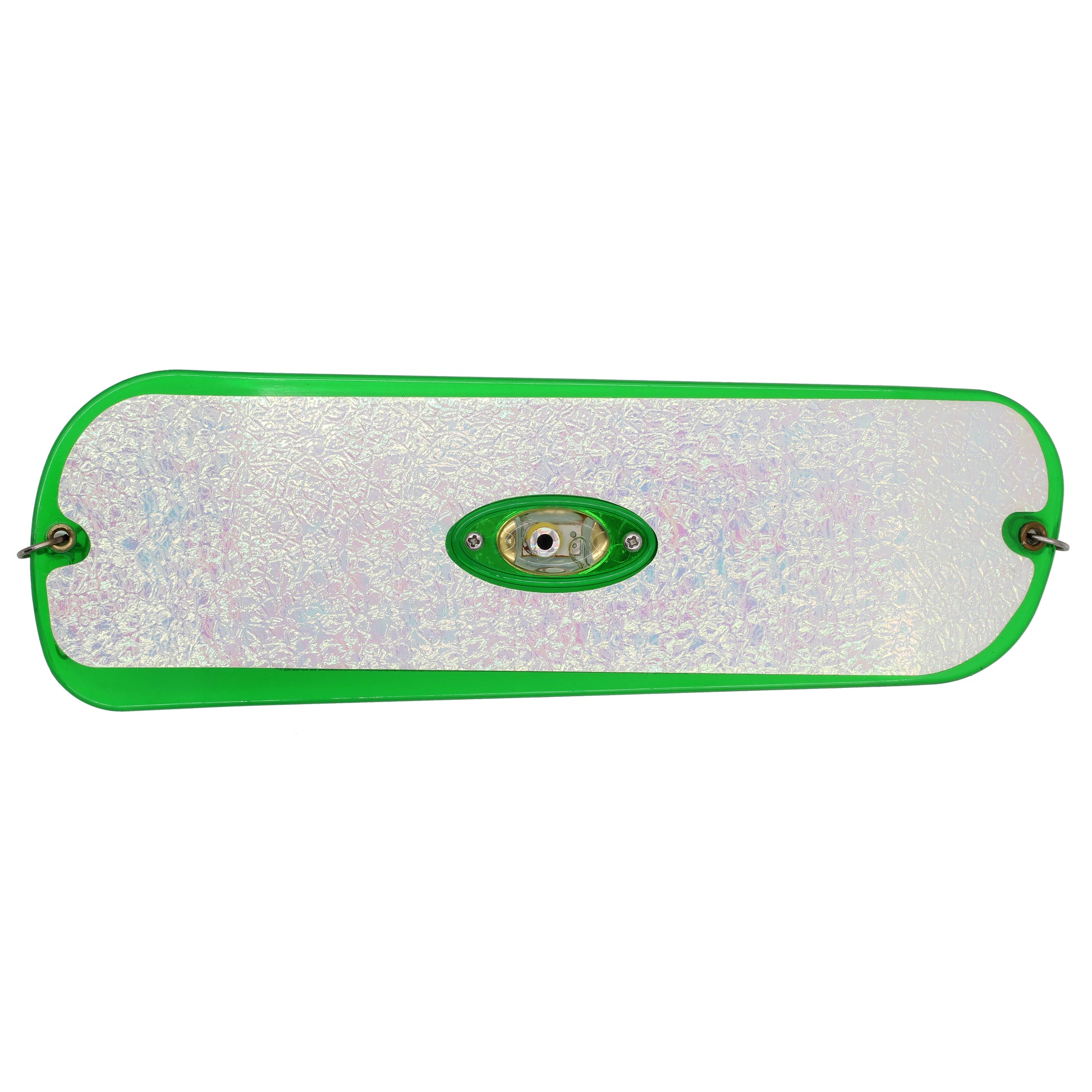 Pro-Troll's HC11 Lighted Flashers feature a built-in, water-activated light which turns on when it contacts the water, and turns off when dry. Its unique circuits flash red, white and green on both sides of the flasher. The sealed battery lasts 80 hours or more, and then the light can be easily replaced.