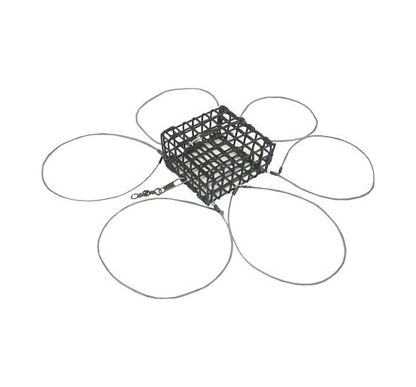 The Promar 6 Loop Crab Snare is made of vinyl coated wire mesh. The snare comes equipped with 6 soft monofilament loops, which allow the snares to close with less effort and cinches down to secure your catch.