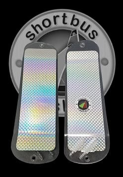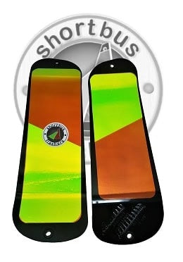 The Shortbus fishing paddles include ball-bearing swivels and Duo-Lock snaps and a large hole for quick snap changes. The 1/8" thick paddles from Shortbus Flashers can be used trolling for salmon, steelhead, kokanee, and other sport fish species.